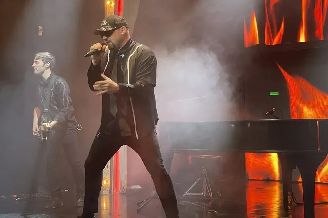 Nos acomodamos en nuestros asientos del V Theater dentro de Planet Hollywood, llegando justo a tiempo porque me distraje con el caos de neón de Miracle Mile Shops (es imposible no hacerlo). Las luces bajaron y de inmediato, Kyle Martin se apoderó del escenario — se sentía en el aire. Cantó “Uptown Girl” y la gente a nuestro alrededor empezó a cantar como si hubieran esperado toda la semana por esto. Hay algo en escuchar “Tiny Dancer” en vivo que te hace sentir el pecho más ligero, ¿sabes? Me sorprendí tarareando incluso en los momentos tranquilos entre canciones.