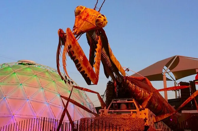 Cuando llegamos al Downtown Container Park, ya había perdido la cuenta de cuántas veces me reí o solté un “¡No puede ser!” con alguna historia. Todo el lugar se siente como si alguien hubiera tomado el Vegas clásico y le hubiera dado una segunda vida con food trucks y murales; incluso hay una mantis gigante de metal que lanza fuego (no es broma). Al final, Mark nos dio su lista de restaurantes favoritos; me marcó un lugar de tacos después de que confesé que no sabía qué elegir. El sol ya se estaba poniendo, tiñendo todo de rosa. Todavía recuerdo ese paseo por Fremont East — la forma en que la gente saluda o simplemente asiente al pasar, como si todos compartieran un secreto.