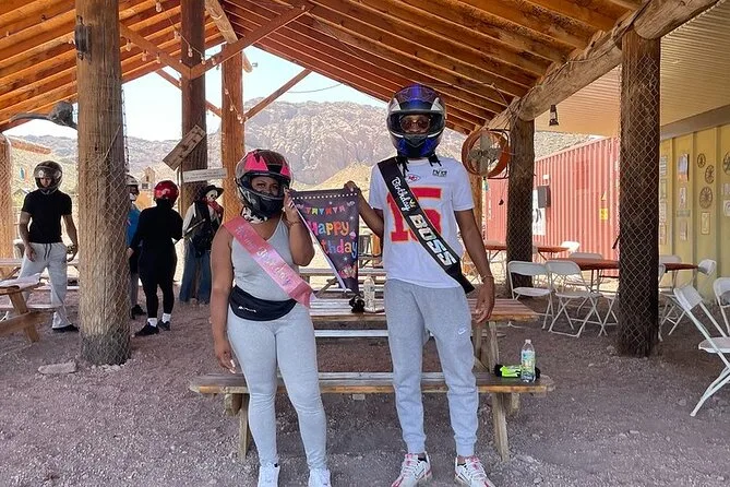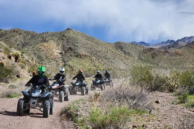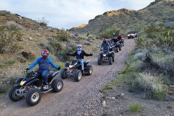 Tu día incluye transporte ida y vuelta desde Las Vegas a Eldorado Canyon (unos 45 minutos por trayecto), uso de un ATV o RZR de dos plazas según tu elección, todo el equipo de seguridad como casco y guantes, y una orientación completa antes de empezar a conducir. Los guías toman fotos durante toda la aventura para que no tengas que preocuparte por tu móvil. También incluye almuerzo de Capriotti’s y agua embotellada. Después de recorrer los senderos polvorientos, harás un tour guiado por la mina Techatticup antes de regresar a la ciudad.