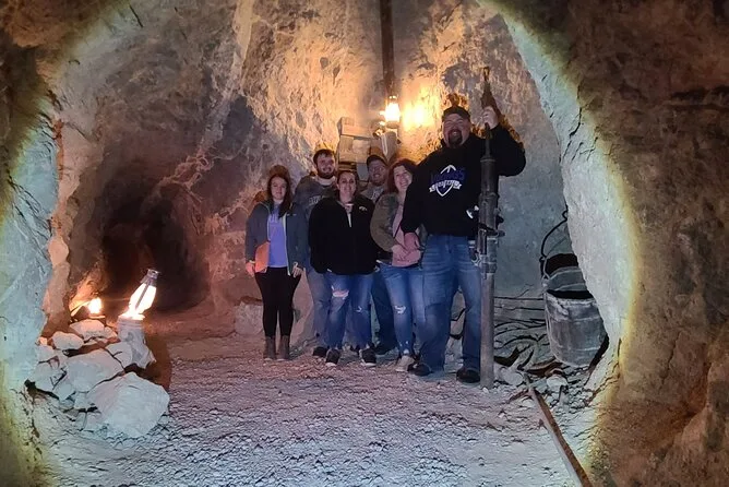 El almuerzo fue justo lo que necesitaba—sándwiches de Capriotti’s bajo un poco de sombra, el tiempo justo para refrescarnos y contar quién casi choca con qué. Alguien intentó lanzar hachas (yo no, mi puntería es terrible) mientras Mike nos enseñaba cómo hacerlo “con ganas”. Luego entramos a la mina Techatticup para el tour. Al entrar, la temperatura bajó de golpe—un alivio después del sol—y caminar por esos túneles estrechos con linternas me hizo preguntarme cómo sobrevivían aquí en 1861. Las historias son increíbles; la gente realmente venía de todos lados persiguiendo sueños de polvo de oro.