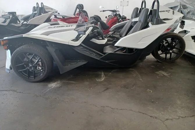 Tu día incluye un slingshot automático (no necesitas licencia de moto), agua embotellada para la parada en Blue Diamond, seguro completo sin depósito, gasolina incluida para todo el recorrido por la carretera 159 cerca de Red Rock Canyon, y la guía de locales que conocen bien estas rutas—solo trae tu licencia de conducir y firma un breve consentimiento antes de salir bajo ese gran cielo de Nevada.