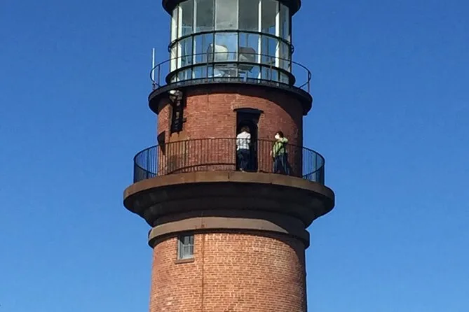 Tu día incluye recogida en una van alta con aire acondicionado y grandes ventanas para que disfrutes el paisaje mientras viajas entre los seis pueblos de Martha’s Vineyard. Un guía local te contará historias durante el camino y harás paradas en lugares como los Acantilados de Aquinnah y el puerto de Menemsha, con tiempo para bajar, sacar fotos o incluso probar un chowder antes de regresar.