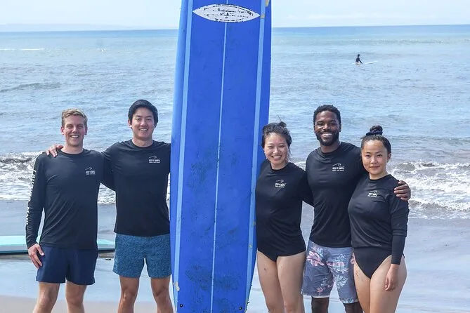 Tu día incluye rash guards de calidad para protegerte del sol, zapatos de agua resistentes para las zonas rocosas y una tabla de surf adaptada a tu tamaño—todo listo antes de que salgan juntos a las olas como grupo o familia.