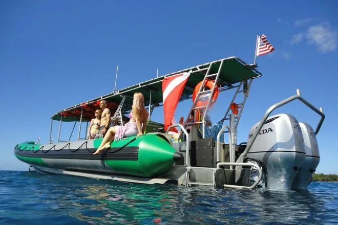 Sube directo desde Ka'anapali Beach para un tour de snorkel de medio día por los arrecifes de West Maui — nada junto a tortugas si tienes suerte, prueba pan de plátano fresco entre inmersiones y aprende historias locales de tu guía mientras ves peces de colores o incluso delfines. Es relajado pero lleno de pequeños momentos que recordarás mucho después de quitarte la sal.