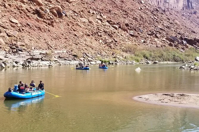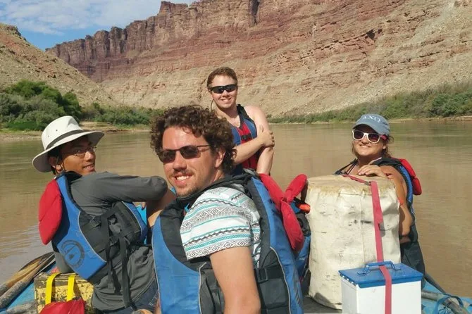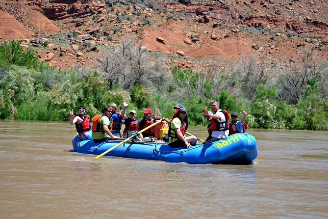 Tu día incluye recogida en hotel si la reservas antes, todos los impuestos y tasas, guía local profesional que rema la balsa (a menos que pidas lo contrario), agua y vasos durante el trayecto, además de un almuerzo servido en medio del río antes de volver a Moab en shuttle al final de la aventura.