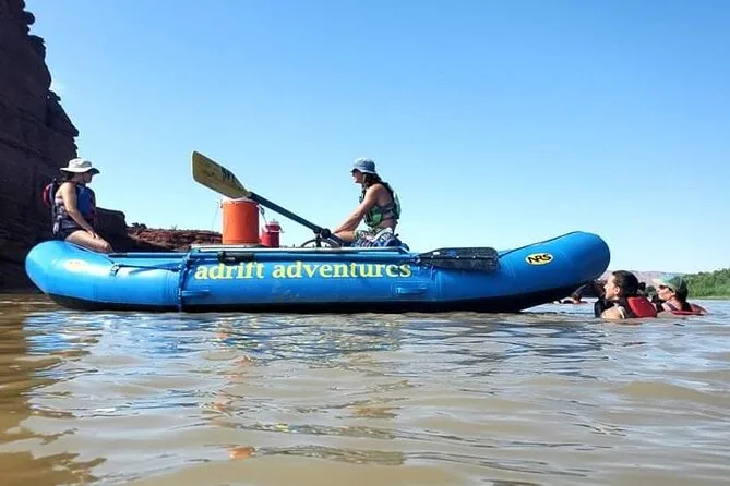 Flotarás bajo las imponentes agujas de Fisher Towers, te mojarás con rápidos suaves en el Río Colorado y escucharás historias locales mientras los acantilados rojos pasan a tu lado. Risas, anécdotas de cine, recogida en hotel si quieres y almuerzo en la balsa — todo en una tarde que se queda contigo mucho más de lo esperado.