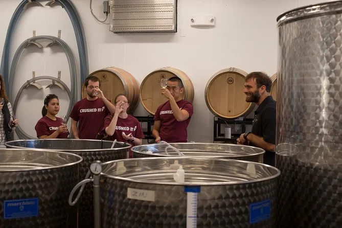 Tu tarde incluye una mirada profunda al proceso de elaboración en Seven Birches, conversación directa con los enólogos, tiempo en la sala de producción viendo el equipo (y probando con las manos), además de una cata completa con muestras terminadas y en proceso, y al final te llevarás tu copa de recuerdo.