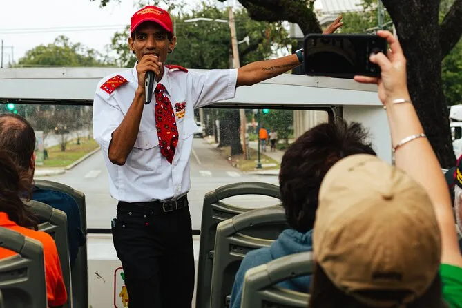 Tu experiencia incluye viajes ilimitados por tres días en buses descapotables de dos pisos por New Orleans, con guías en vivo que cuentan historias en cada ruta. También disfrutarás de tours guiados a pie por el French Quarter y Garden District (solo bájate en sus paradas), y un poncho gratis por si llueve—sin preocuparte por el clima.