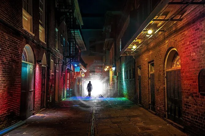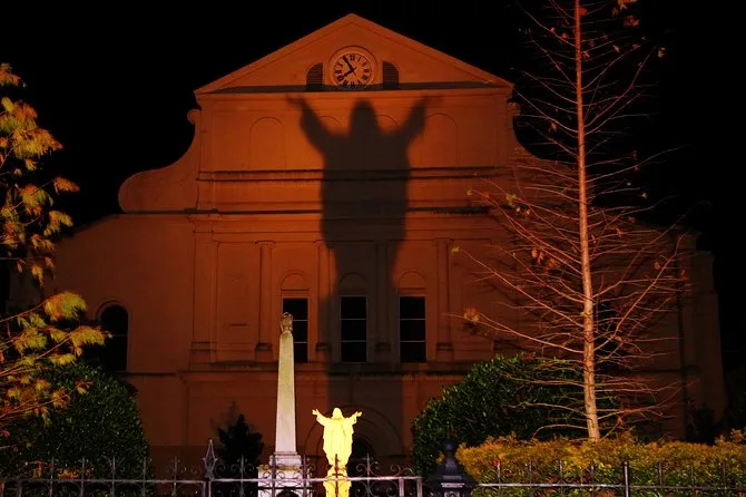 Tu noche incluye un tour guiado de dos horas a pie por el Barrio Francés de New Orleans con relatos de fantasmas, vampiros, brujas, rituales de vudú y misterios sin resolver, todo de la mano de un experto local que conoce cada rincón de estas calles antiguas.