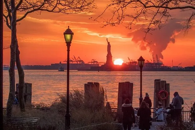 Hay una parada para ver la puesta de sol sobre el río Hudson y la Estatua de la Libertad, si el clima lo permite.
