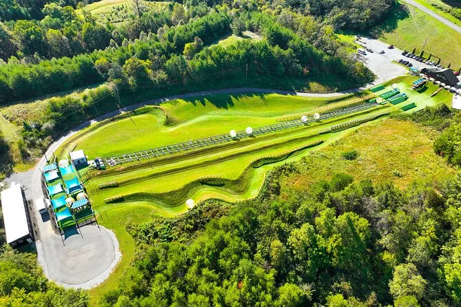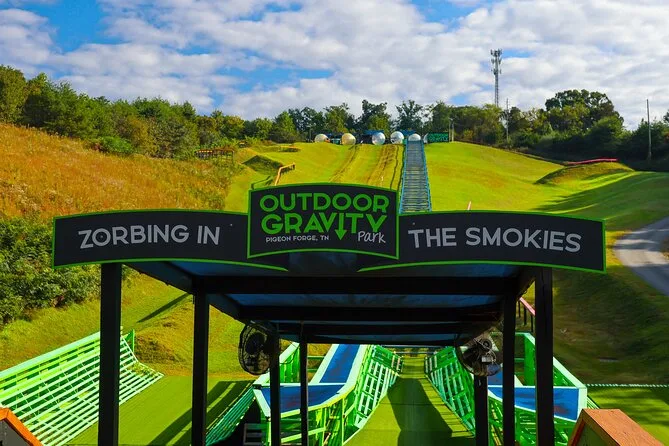Tu experiencia incluye una bajada por cualquiera de las tres pistas únicas de zorbing en Outdoor Gravity Park, Pigeon Forge. Solo llega con traje de baño y toalla, elige tu pista favorita (solo o con amigos), recibe ayuda del personal para entrar seguro en la OGO y luego mira tu video antes de irte empapado y sonriendo.