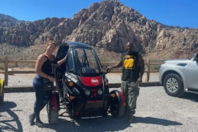 Deja atrás Las Vegas por unas horas de libertad en carretera abierta con tu propio coche eléctrico privado. Recorre el Scenic Loop de Red Rock Canyon a tu ritmo, para para fotos o comer en Red Rock Casino Resort & Spa, y disfruta de detalles como asientos calefactables y ventiladores con nebulizador — además de entradas para un show de comedia si quieres.