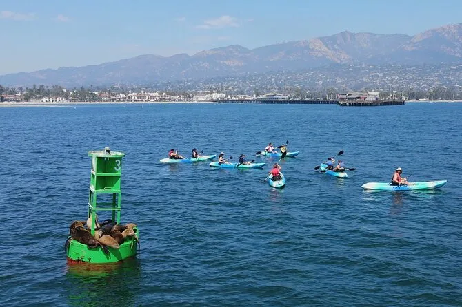 Remamos juntos, esquivando un par de barcos pesqueros — siempre hay más movimiento en el puerto de lo que imaginas. La palabra clave aquí es “tour kayak Santa Barbara”, pero la verdad es que se sentía menos como un tour y más como flotar en el patio trasero de alguien. Alex señaló unos veleros enormes (uno, según dijo, era de un rockero retirado), y de repente aparecieron leones marinos ladrándonos desde una boya. Huelen… bueno, no se esconden. Pero verlos moverse torpemente hizo reír a todos. Intenté decir algo sobre ellos en español (sin saber por qué), y Alex solo negó con la cabeza.