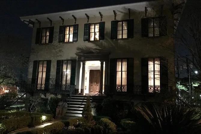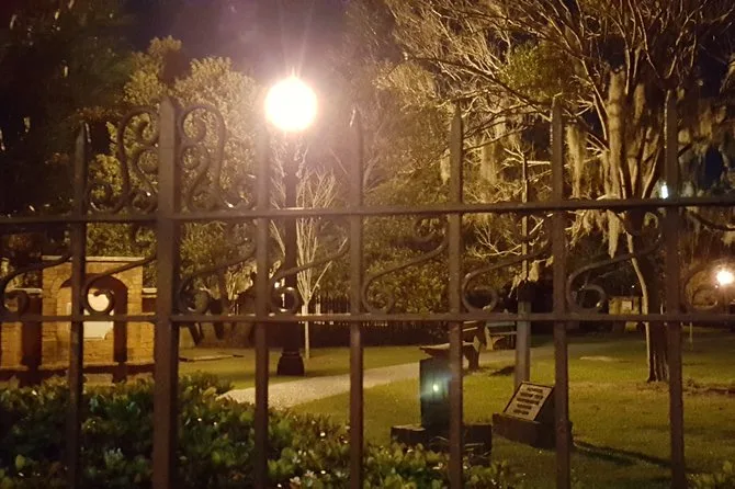 No dejaba de pensar en todas las historias que guardan estas plazas. Chippewa Square estaba animada incluso de noche — una pareja paseando al perro nos saludó (aunque no se permiten perros en el tour). Al llegar a la Casa Andrew Low, Patrick señaló una ventana donde han visto cosas moverse. Entrecerré los ojos, pero solo vi mi reflejo, que parecía tan asustado como yo. La caminata no fue corta — unas 2 horas o más — pero el tiempo voló con todas esas paradas: Lafayette Square, Wright Square (la llaman “la plaza del ahorcamiento,” y eso me puso los pelos de punta), Oglethorpe Square… Es curioso cómo empiezas buscando fantasmas y terminas fijándote en detalles pequeños: barandales cubiertos de musgo, alguien tarareando desde una ventana abierta, el ritmo desigual de tus propios pasos.