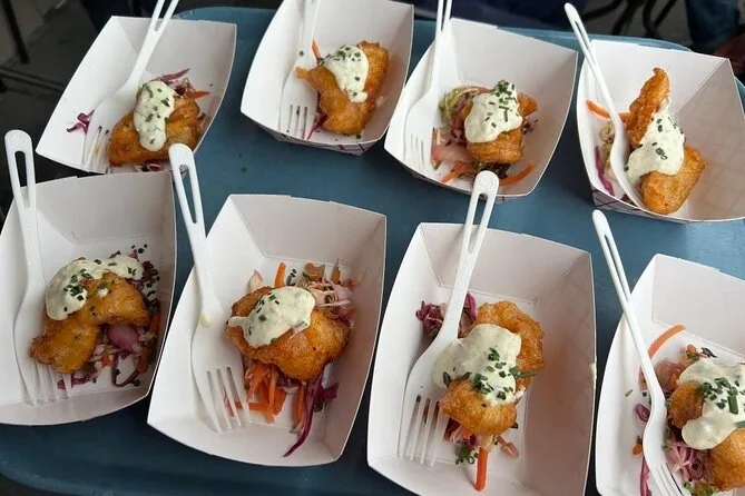 Tu día incluye un paseo guiado por Pike Place Market en Seattle con más de 8 generosas degustaciones—desde pasteles calientes hasta mariscos frescos—además de historias de vendedores con años en el mercado y muchas oportunidades para preguntar o charlar.