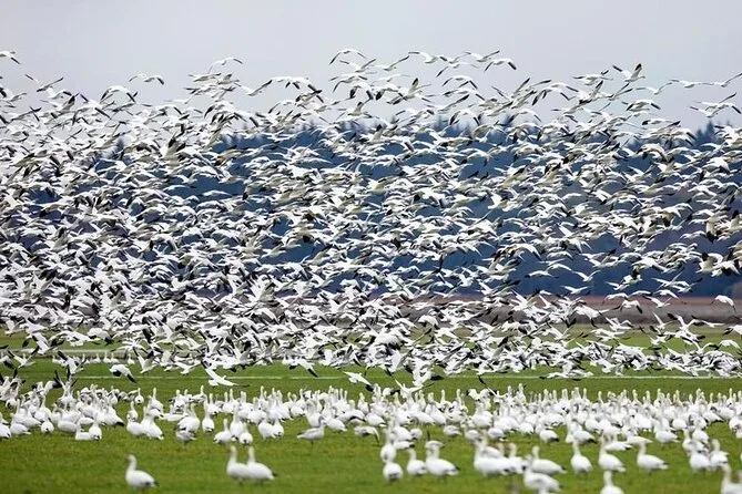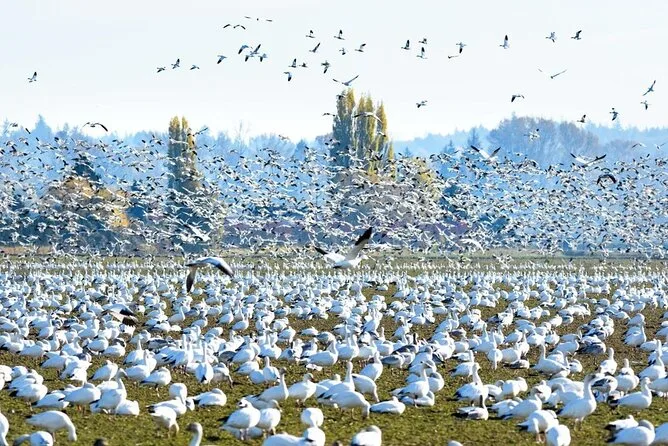 El tour incluye una parada cerca de Fir Island Farms para observar gansos de nieve; las avistamientos dependen de la temporada y la suerte.