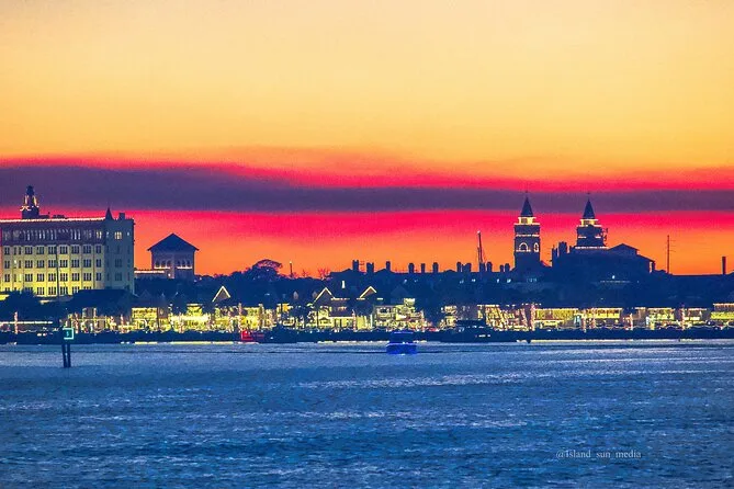Verás el Castillo de San Marcos, el Faro de St Augustine, el Puente de los Leones y las luces del centro junto a la bahía.