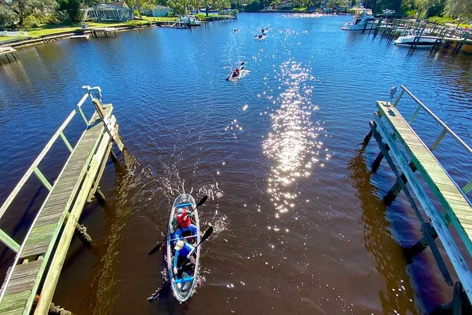 Remarás por los canales de Tarpon Springs en un kayak transparente con un guía local—pasando por casas históricas y los Sponge Docks antes de adentrarte en las cálidas aguas de Spring Bayou donde se reúnen los manatíes. Prepárate para momentos únicos con la fauna y pequeñas sorpresas en la isla de manglares. Hay algo mágico en ver a estos gigantes gentiles justo bajo tus pies.