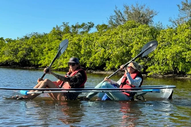 Tu día incluye kayaks transparentes con remos y asientos cómodos, chalecos salvavidas y silbatos para seguridad, además de bolsas impermeables para proteger tus cosas—todo guiado por alguien que conoce Tarpon Springs al detalle.