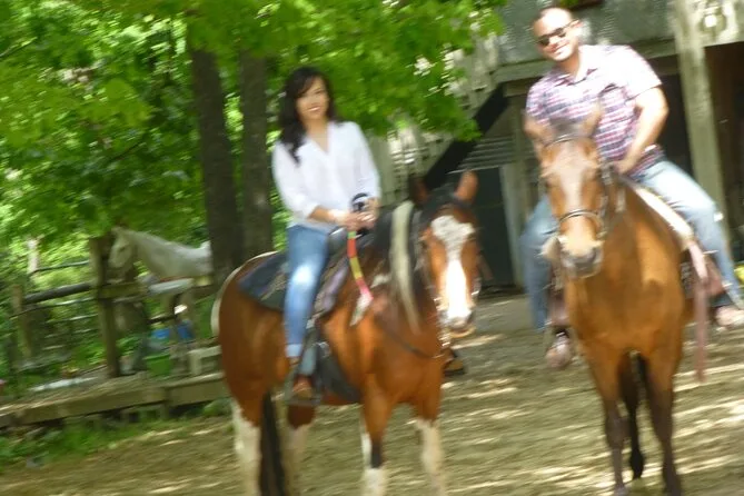 Tu día incluye recogida en el lugar asignado cerca de Atlanta o Athens (detalles enviados antes), un paseo guiado de 90 minutos a caballo por senderos cuidados con un guía local experto y certificado en primeros auxilios y RCP, seis catas de vino fuera de ruta en un viñedo cercano con personal amable, además de un picnic con pavo, pan plano, hummus, nueces, frutas y verduras frescas de su granja orgánica antes de regresar por la tarde.
