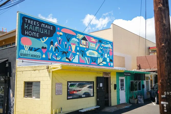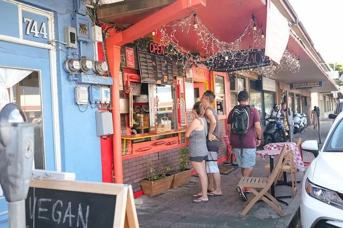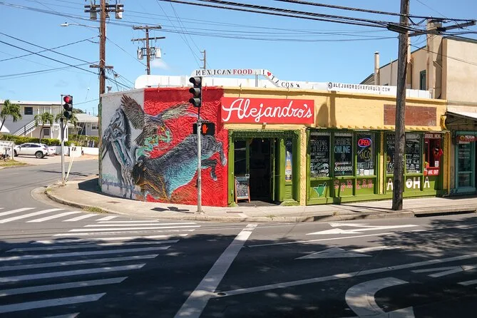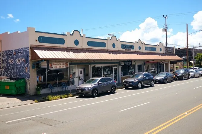 La ruta pasa por el Parque Regional Kapiolani — grandes praderas llenas de familias, corredores y alguien tocando un ukelele bajo un árbol banyan. Si viajas un sábado, hacen parada en el mercado de agricultores KCC. No lo tenía planeado, pero terminé recorriendo filas de puestos de frutas y cafés. Probé un mochi de piña (pegajoso, dulce y raro, pero perfecto) mientras un vendedor mayor me contaba que cultiva su propio jengibre “up mauka”. Li se rió cuando intenté decirlo en mandarín — seguro lo dije fatal.