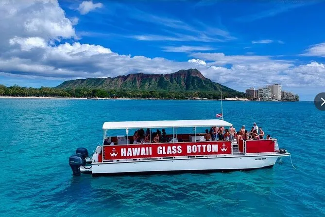 Tu salida incluye un paseo de 60 minutos con vistas a Waikiki Beach y Diamond Head desde un barco con fondo de cristal y sombra. El capitán y la tripulación local experimentados ofrecen agua embotellada y toman fotos gratis mientras observas la vida marina a través de los ventanales antes de regresar a Kewalo Basin Harbor.