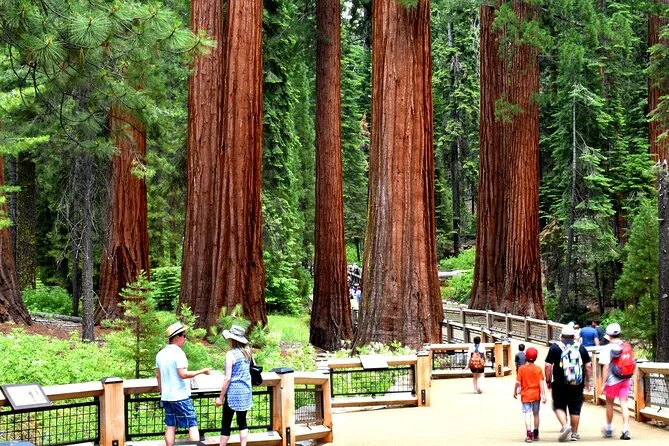 El tour incluye Mariposa Grove cuando las carreteras están abiertas y los shuttles funcionan; el acceso depende de la temporada.