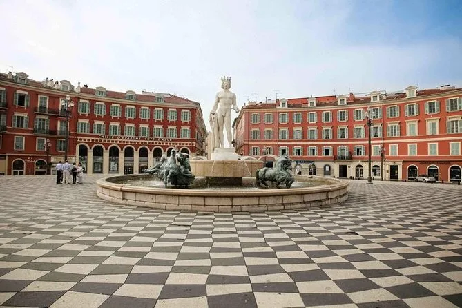 ¿Alguna vez te has preguntado cómo sabe la socca recién hecha? Yo ni siquiera sabía pronunciarla hasta que nuestra guía (se llamaba Camille) nos gastó una broma suave sobre nuestros acentos. Empezamos en Place Massena, esa plaza grande con el suelo a cuadros y esas estatuas sobre postes que parecen vigilar todo. De inmediato, Camille nos dio unos panes con aceitunas que olían a brisa marina mezclada con algo terroso. Pensé: esto no es solo un snack, es como un saludo de Niza.