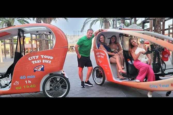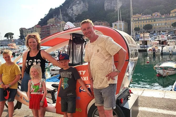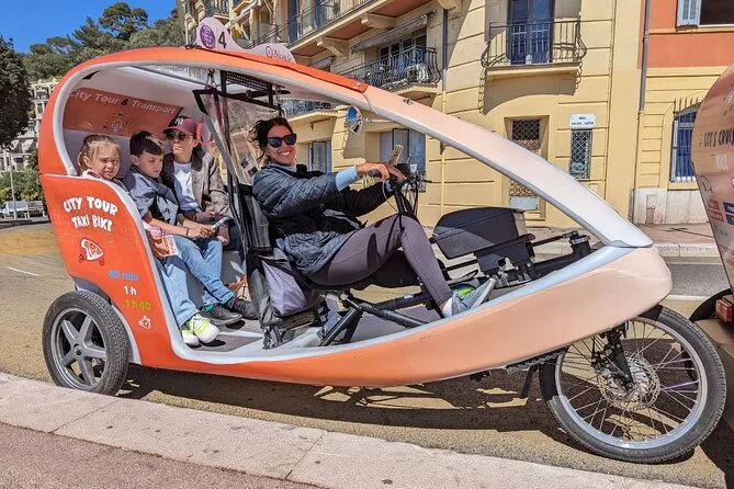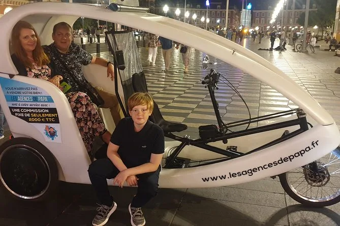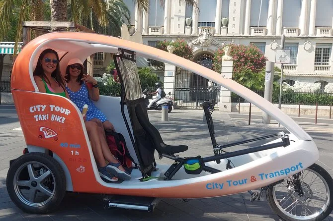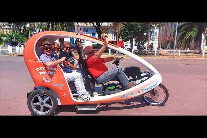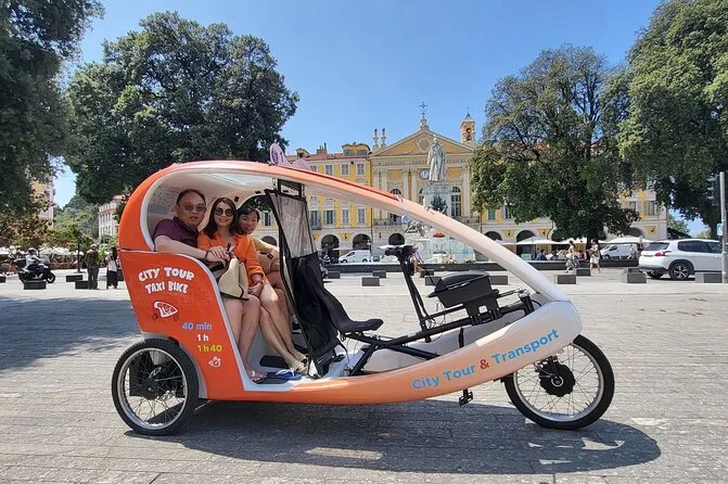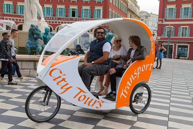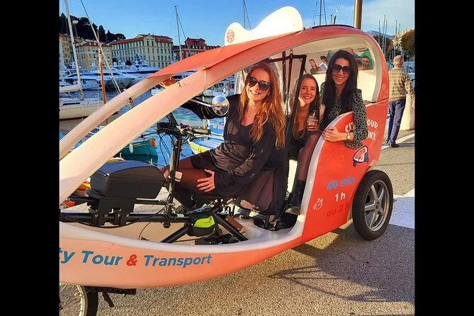 Tu día incluye transporte privado en un bicitaxi moderno con WiFi, recogida y regreso en hotel o apartamento en el centro de Nice, comentarios en vivo de un guía local amable (más audio multilingüe si quieres), paradas flexibles para fotos cuando quieras y muchas historias entre cada punto mientras recorres la ciudad juntos.