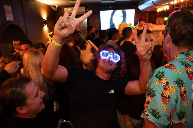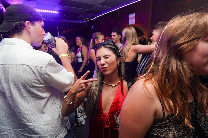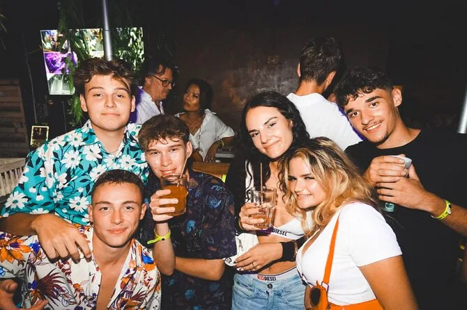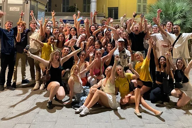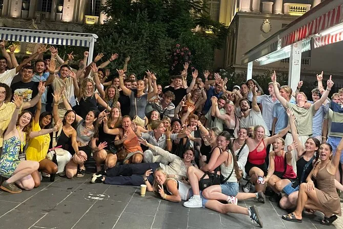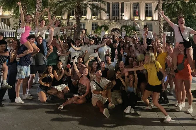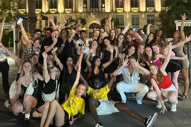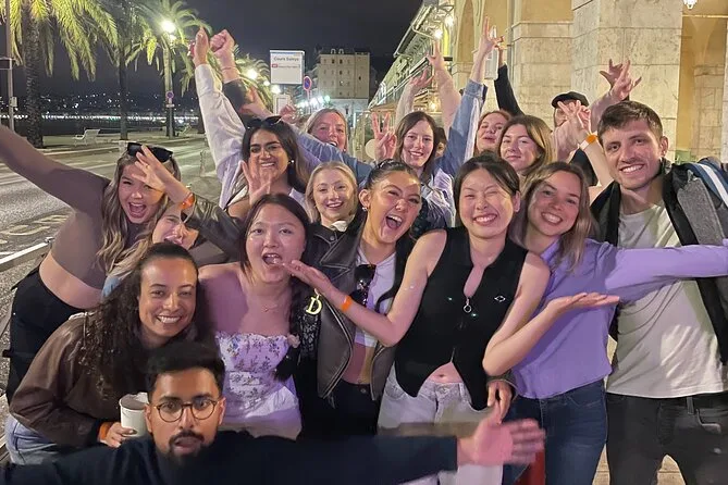 Tu noche incluye seis chupitos gratis en cinco bares seleccionados de Niza, ofertas exclusivas en bebidas desde 6 € por cóctel o cerveza, entrada VIP sin colas a los mejores clubes, juegos y dinámicas guiadas por un local (uno por cada veinte personas), y muchas oportunidades para conocer gente de todo el mundo, todo con guía seguro hasta altas horas.