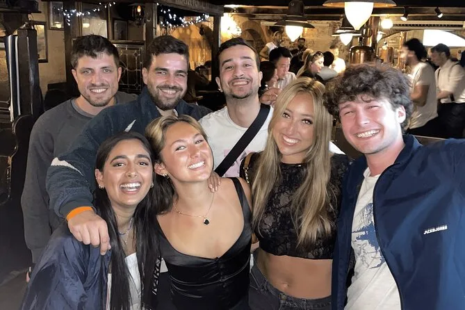 Cuando llegamos a Paddy’s Bar, ya estoy intercambiando historias con desconocidos como si fuéramos viejos amigos. El lugar está a tope y lleno de sombreros verdes por alguna razón (¿será que aquí siempre es el Día de San Patricio?). Nuestro guía nos reúne para un juego absurdo que consiste en equilibrar monedas en la nariz—no preguntes cómo salió eso. El segundo chupito es más dulce, o quizá ya me estoy acostumbrando. Alguien derrama su bebida y se disculpa en francés; a nadie le importa. Caminando entre bares, la música rebota en los edificios—a veces house, otras pop malo de los 90. Todo se mezcla después de un rato.