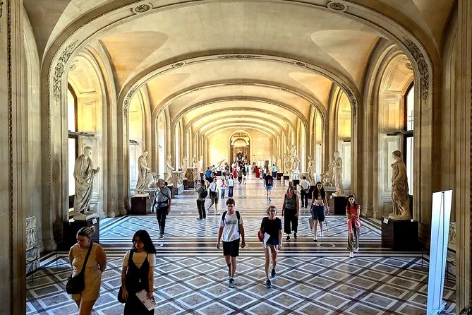Tu día incluye entradas reservadas al Museo del Louvre en París, todas las tarifas pagadas para que evites las largas filas, y un guía local profesional que te llevará con un grupo pequeño (máximo seis personas) por obras maestras y rincones secretos durante 2.5 horas dentro del museo.