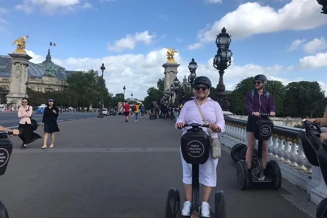 Tu día incluye el uso de un Segway PT con casco y chubasquero si es necesario, un guía local amable que te llevará por los principales puntos de París como el Grand Palais y Place de la Concorde, y una sesión de entrenamiento de 20 minutos para que todos se sientan seguros antes de comenzar.