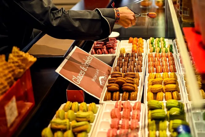 Tu día incluye paseos guiados por Saint-Germain-des-Prés con muchas paradas para probar quesos franceses (¡cinco tipos!), foie gras, embutidos y pan fresco; vinos finos y espumosos; macarons auténticos; pasteles de choux; galletas de mantequilla; chocolates artesanales; helados o pasteles de temporada; y un plato secreto sorpresa, todo guiado por alguien que conoce a la perfección estos sabores parisinos.