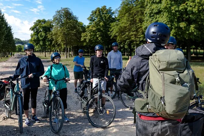Tu día incluye el uso de una bici eléctrica con casco y capa de lluvia si hace falta, alforja para tus compras en el mercado, entradas para el Hamlet de María Antonieta y Petit Trianon, acceso completo al Château de Versailles y sus jardines, manta para el picnic junto al canal, instrucciones claras con billete de tren de regreso a París, y la guía se encarga de devolver las bicicletas para que tú solo disfrutes.