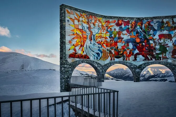 Tu día incluye transporte cómodo desde Tbilisi con todos los gastos del conductor cubiertos y la guía de un profesional local en cada parada — además de tiempo para probar miel de montaña en Gudauri y degustar platos georgianos durante el almuerzo antes de regresar por la tarde.