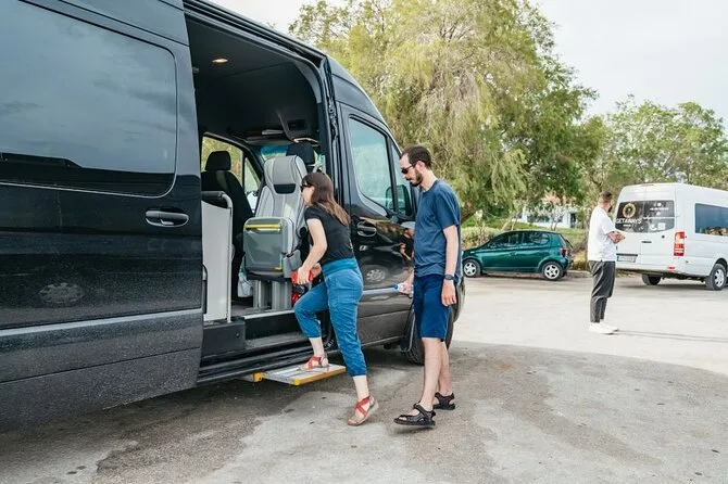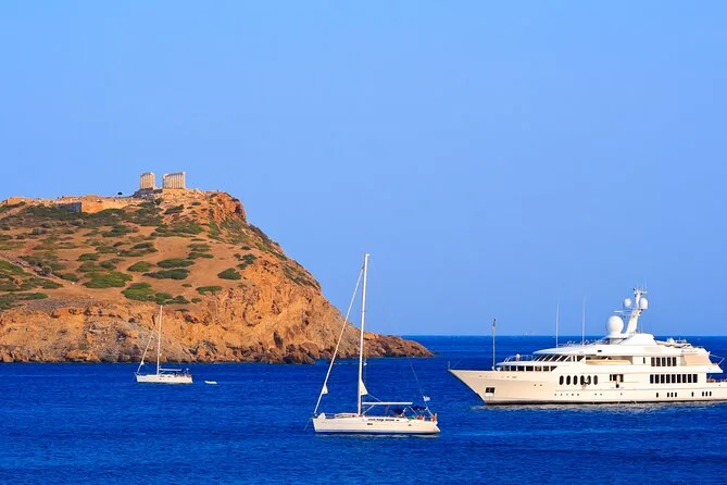 Tu día incluye recogida y regreso al hotel en Atenas, transporte en minibús con aire acondicionado y un guía local o conductor que compartirá historias durante el trayecto, todos los impuestos locales, tiempo libre para fotos en el lago Vouliagmeni, parada en playa pública con duchas y vestuarios, y entrada para recorrer el Templo de Poseidón antes de regresar tras el atardecer.