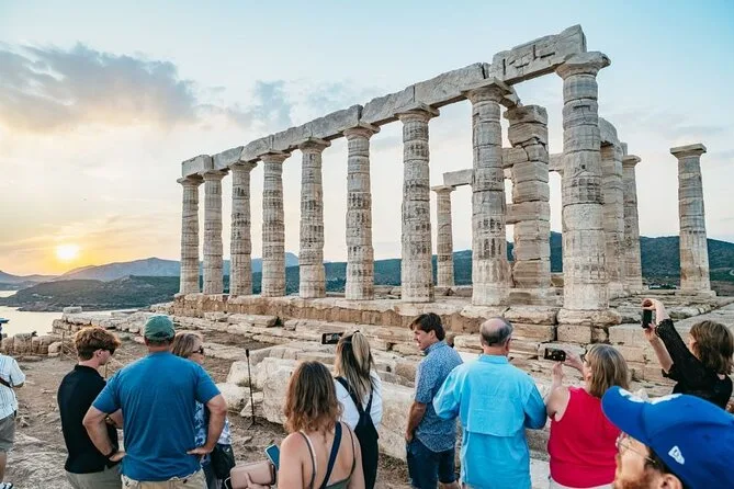 Recorre la carretera costera de Atenas con un grupo pequeño, haz una parada para fotos en el lago Vouliagmeni y disfruta de un baño o relax junto al mar Egeo (mayo–octubre). Explora los acantilados de Cabo Sunión y pasea entre las columnas antiguas de Poseidón mientras el cielo se tiñe de colores al atardecer. Historias locales y tiempo para contemplar en calma te esperan.