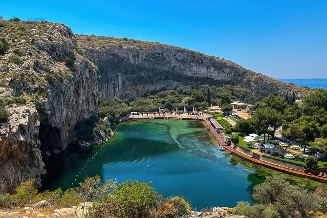 Se hace una parada para fotos en el lago Vouliagmeni, pero no para nadar.