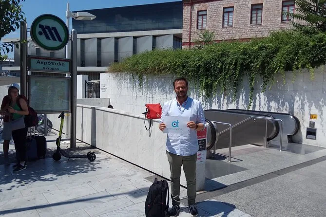 El tour guiado comienza en un punto de encuentro cerca de la entrada a la Acrópolis en Atenas; hay transporte público cercano.