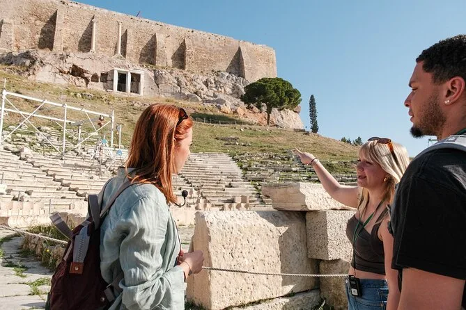 Tu día incluye entradas sin colas a la Acrópolis (si las eliges), auriculares desechables para grupos de más de cinco personas para que siempre escuches bien al guía aunque haya mucha gente, y la compañía de un experto local apasionado que comparte historias mientras exploras juntos desde los Propileos hasta el Partenón y más allá.