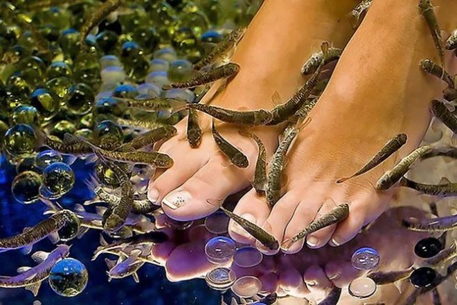 Había leído sobre esta pedicura natural antes, pero nunca la había probado hasta ahora. Al principio es raro — docenas de bocas pequeñitas rozando tu piel — pero al minuto te acostumbras. El agua estaba más caliente de lo que esperaba, y había un leve aroma a hierbas que venía de algún lado detrás de mí, quizás de las toallas. María me revisó un par de veces para asegurarse de que estuviera cómodo y me contó que esta práctica lleva siglos en Turquía y Asia. También me dijo cómo se llaman estos peces en griego (ya lo olvidé), y los dos nos reímos cuando intenté repetirlo.