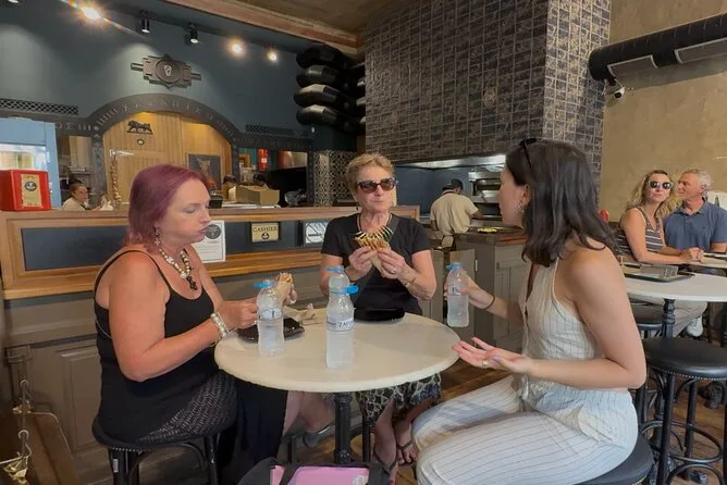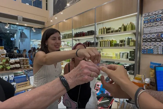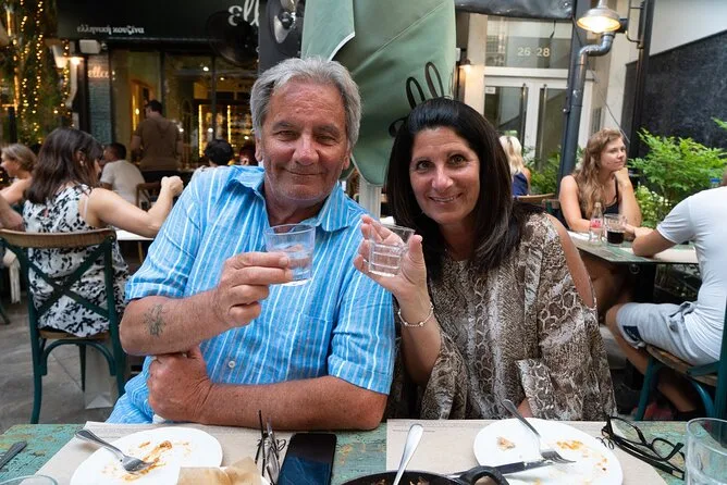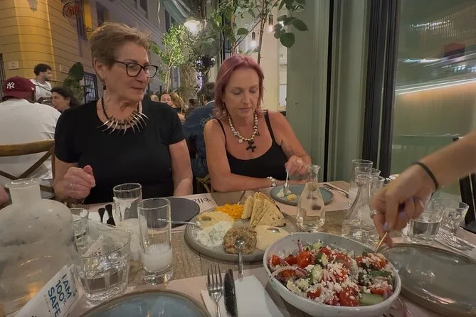 Tu noche incluye todos los impuestos y IVA; degustación de souvlaki en Monastiraki; cuatro vinos griegos con quesos; cata de aceite de oliva y mastiha en Plaka; cena completa con entrantes y plato principal en un restaurante top; gelato de postre; y un guía foodie que te acompaña en cada paso — solo avisa si tienes alguna necesidad dietética al reservar.
