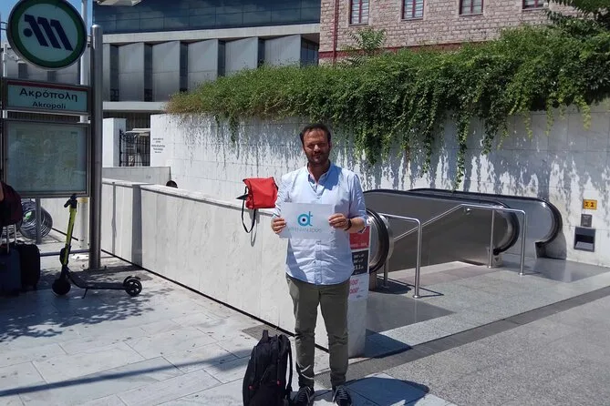 El punto de encuentro es Mitseon 2, 11742 Atenas, cerca de la estación de metro Acrópolis.