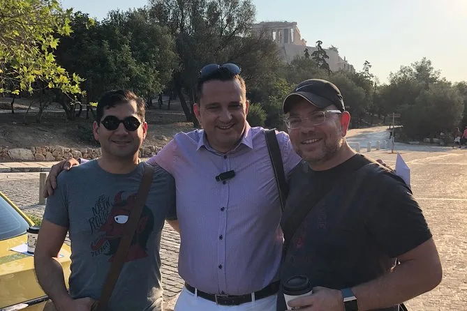 El paseo por la calle Panepistimiou fue un desfile de edificios neoclásicos y gente apresurada — estudiantes cruzando frente a fachadas majestuosas. La última parada fue en el monte Licabeto para una panorámica completa de Atenas; el viento me despeinaba y el ruido de la ciudad parecía lejano por un momento. El Museo de la Acrópolis se sintió fresco y tranquilo después del calor — suelos de cristal que muestran ruinas bajo tus pies, estatuas que parecen cobrar vida con la luz tamizada. Cinco horas pasaron volando; no fue apresurado, tal vez porque Yannis nos dejó quedarnos el tiempo que quisimos en cada lugar. Así que sí… si solo tienes medio día en Atenas, este tour privado realmente aprovecha al máximo el tiempo.