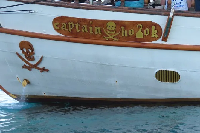 Subimos a la cubierta de madera del viejo Capitán Garfio justo cuando el sol empezaba a calentar de verdad el puerto de Kos. La madera se sentía suave bajo mis sandalias — se olía la sal y el protector solar por todos lados. Nuestra guía nos pasó un móvil con la audioguía (que yo no paraba de liarla con él), pero la verdad es que me quedé más escuchando el mar y las voces de la gente buscando su sitio en las tumbonas. Se oía un zumbido bajo del motor mientras nos alejábamos, y de repente, todo era azul abierto a nuestro alrededor. Alguien señaló unos delfines cerca de las piscifactorías de Kalymnos — casi me los pierdo porque estaba intentando no derramar mi café. Pero sí, los vimos un par de segundos.