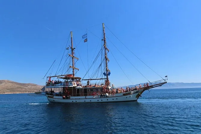Sube a un velero clásico en Kos para un crucero a tres islas con avistamiento de delfines cerca de Kalymnos, zumo de naranja y miel en Vathy, baños en las playas cristalinas de Platy y un almuerzo griego tradicional en cubierta. Risas con locales y momentos tranquilos junto a capillas escondidas—un día que te deja con la piel dorada y una sonrisa.