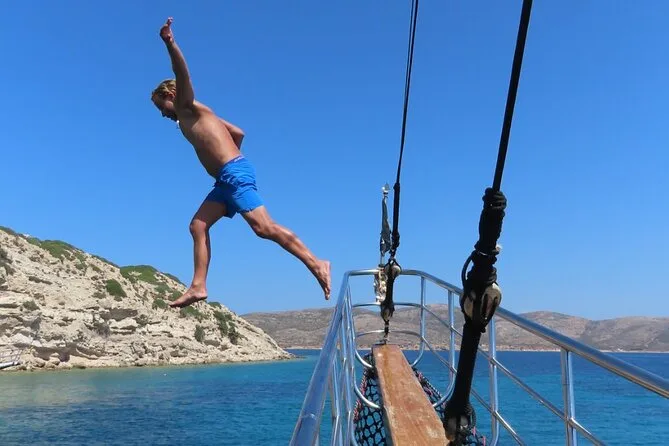Sí, hay paradas para nadar y también oportunidades para saltar desde las rocas en la isla de Platy.