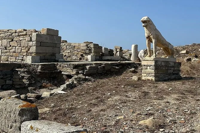 Al pisar la cubierta descalza, alguien me ofreció un café — recuerdo lo cálida que estaba la madera, a pesar de que apenas eran las 10 de la mañana. La tripulación bromeaba con la “hora griega” mientras repartían los chalecos salvavidas (nadie los usó, pero se agradecía saber que estaban por si acaso). Nuestro guía, Yannis, señaló Delos emergiendo entre la bruma y nos contó cómo Apolo nació allí. Ya conocía esa historia, pero con el viento en la cara se quedó grabada de otra manera.