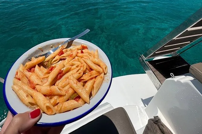 Alrededor de una hora después anclamos frente a Rhenia. Confieso que dudé al principio — el agua parecía fría (no lo estaba). Me lancé por la escalera y nadar ahí fue como flotar en cristal. Nuestro guía Kostas me pasó una máscara de snorkel y señaló unos peces diminutos que nadaban a mis pies; dijo algo de “el verdadero spa griego”. Justo después llegó el almuerzo — pasta con aceite de oliva más intenso que el que compro en casa, y tomates que realmente olían dulce. Pasaron vino de la casa (ligero, fácil de beber) y fruta tan madura que me manchó los dedos.